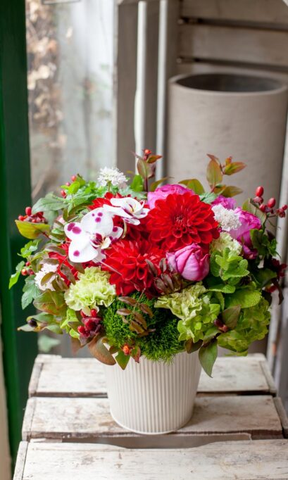 お花は季節商品のため掲載画像とは変わります。毎回、同じではない新しい表情をお楽しみください。花器・ラッピングもお花に合わせた物に変更されます。ご用途、ご希望のイメージのリクエストをお受けします。ご注文フォームでご記入ください。